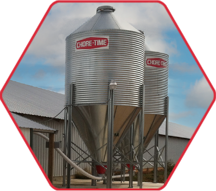 Chore-Time’s complete breeder feeding systems include our famous FLEX-AUGER® Feed Conveying System, reliable scales, and ALL-OUT® Feed Storage Bins.