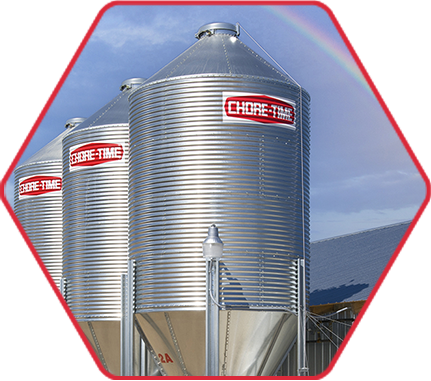 Chore-Time's proven feeding systems get birds off to a good start, minimizing wasted feed, and providing birds with consistent access to fresh feed. They include our famous FLEX-AUGER® Feed Conveying System and ALL-OUT® Feed Storage Bins.