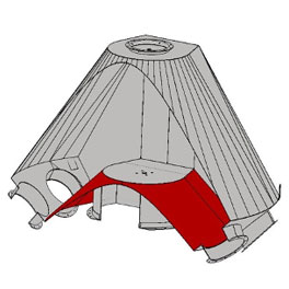 Brock grain distributor inlets feature a unique inverted cone design that prevents material and moisture from building up on the distributor bottom. Distributor sizes available with 4 to 12 outlets and diameters from 6 to 24 inches (152 to 610 mm).
