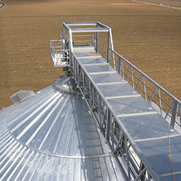 Brock's unique EVERLOC® Roof Peak Mounting System enables installers to make efficient, uniform connections of LeMar® catwalk and tower support systems to Brock EVEREST® bins.